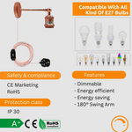 This plug-in wall mount lamp combines functionality with vintage elegance, offering a perfect solution for stylish indoor wall lights. The retro wall plug-in lights design comes in a sleek rose gold finish, ideal for enhancing your living room wall lighting, bedroom, or bathroom decor. Featuring an adjustable angle, it’s versatile for use as plugin wall sconce lights or lamps for the wall wherever you need ambient lighting.